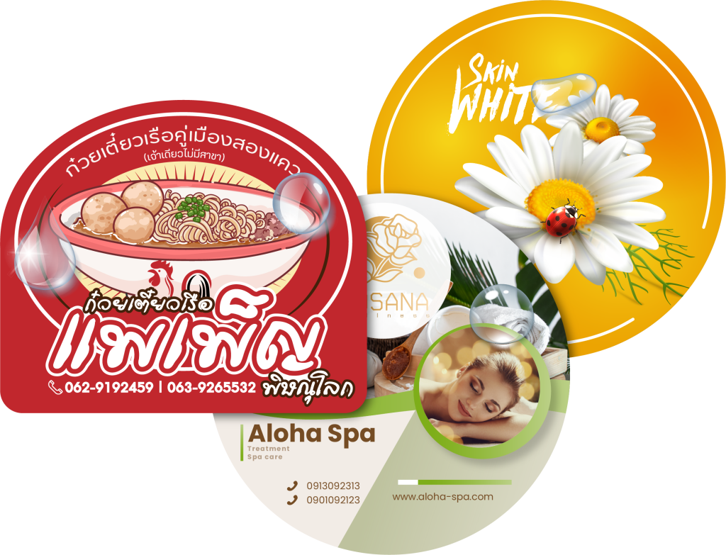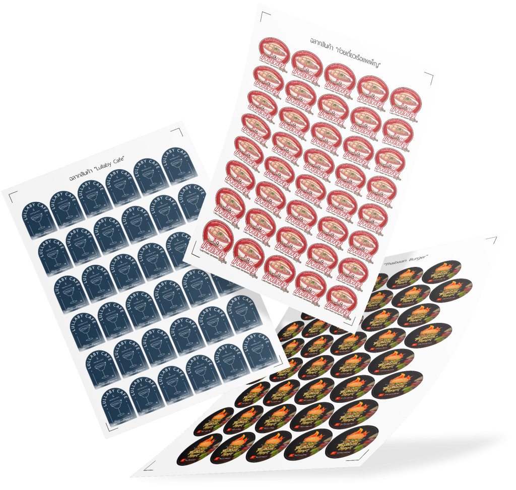 งานพิมพ์สีสันสดใส ลงบนสติ๊กเกอร์กระดาษ,